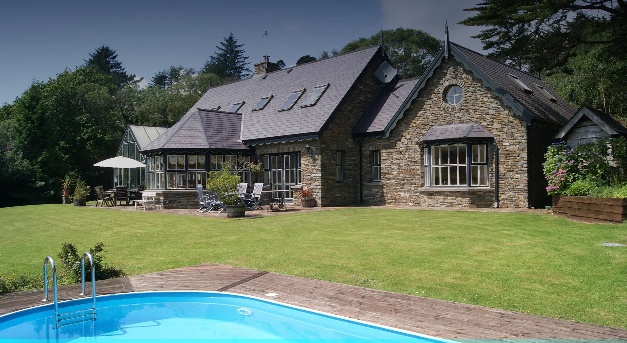 It is a spacious house on 3 acres of private woodlands in a very private and secluded setting, with four bedrooms, multiple bathrooms, a private pool, and outdoor dining and lounge areas. The property also boasts scenic views of the ocean and is located within close proximity to several beaches and other attractions.